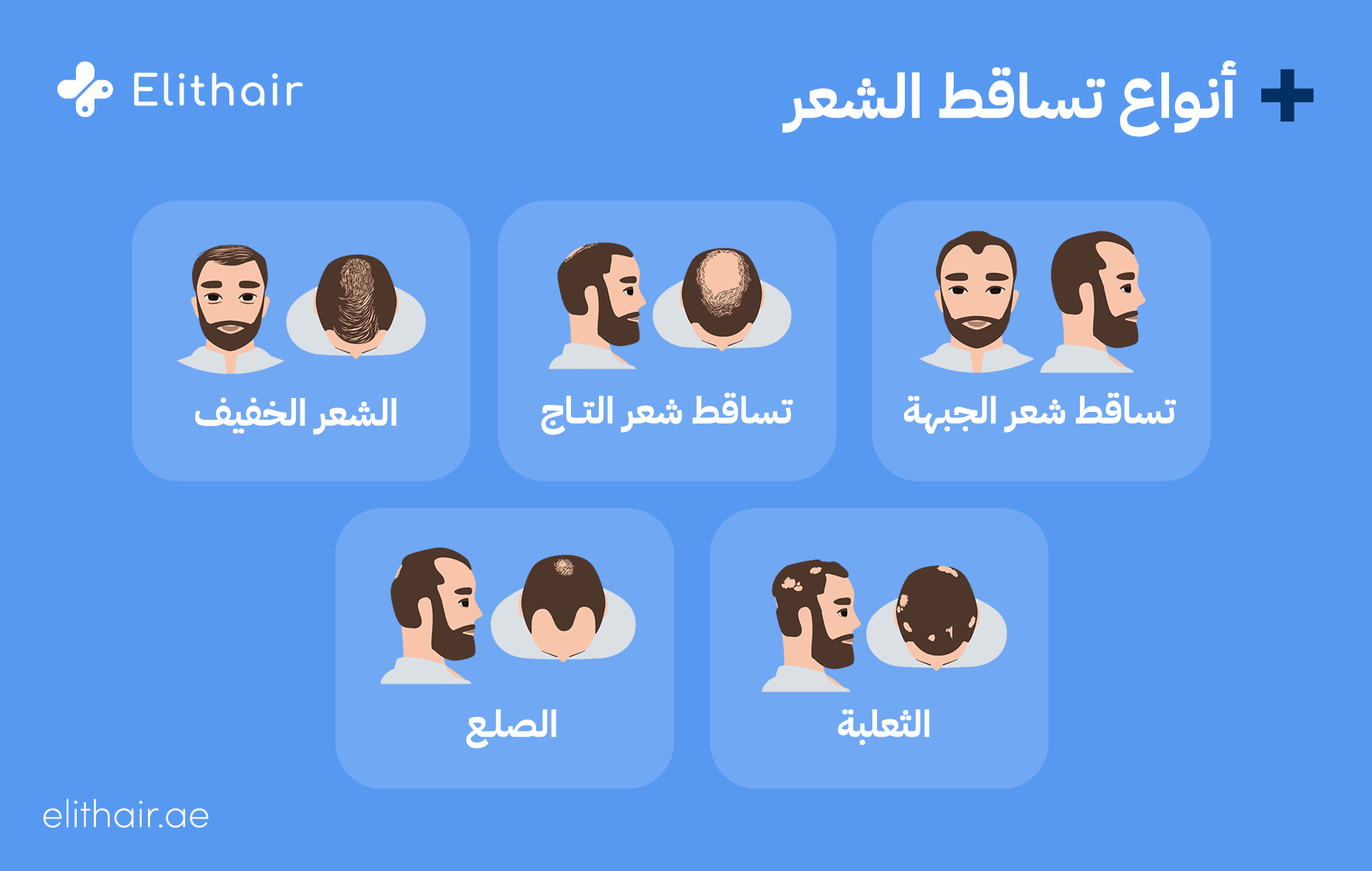 ذكرت الكثير من الأنواع أليس كذلك؟ لا مشكلة إليك مخلص لأنواع تساقط الشعر بالصور: