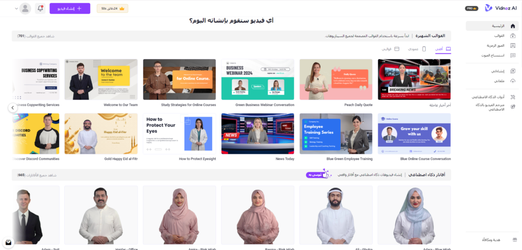 - تنوع الخيارات: يوفر Vidnoz مجموعة واسعة من القوالب والافتارات والخلفيات والموسيقى.